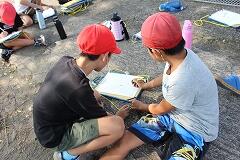 また、形がライオンに似ている「ライオン岩」も見学でき、「ほんとにライオンみたい。たてがみがある。」と、自然が作り出したアートに目を輝かせていました。少し雲がかかっていても、子どもたちの熱気と好奇心は晴天そのもの。この後も、まだまだ楽しみな活動が続きます。最高の2日間になること間違いなし!明日以降の報告もどうぞお楽しみに。