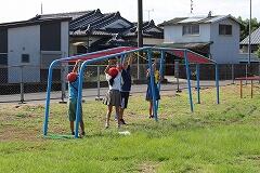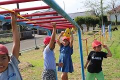 「え、うそ!このタイヤの遊具、27メートル50センチもあるの。」 「そんなに長いの!あの端からこの端まで、歩くとそんなに遠く感じないのに、測ったらすごい長さだ。」そして、クライミングロープ(斜面)を測ったときも… 「僕たちがいつも登ってるこの斜面、3メートル25センチもあるんだって!」 「ええっ、そんなにあるの。一歩一歩登っている時は短い気がしてたけど、3メートルって…僕の身長よりも高いぞ。」 「巻き尺でピーンと伸ばして見ると、本当に長〜く感じるね。僕たち、こんなに長い距離を毎日登って遊んでいたんだ。」 自分たちが普段何気なく利用している遊具の実際の長さを知ることで、「3メートル」「27メートル」といった数字が、単なる記号ではなく、「実際にどれくらいの距離・大きさなのか」というリアルな感覚として心に刻まれました。