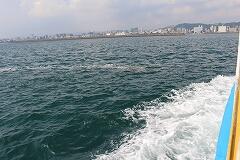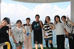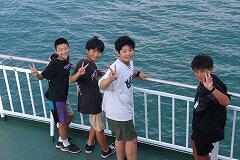 【桜島を背に、いざ鹿児島市内へ】 まずは桜島の展望所から、雄大な景色を堪能しました。ゴツゴツとした溶岩の岩肌は迫力満点です。その後、カーフェリーに乗船し、鹿児島市内へと移動しました。デッキから見る海と、徐々に近づいてくる鹿児島市内の街並みに、みんな大喜び!潮風を感じながらの船旅は格別でした。「街があんなに近い。」「海から見る景色は全然違うね。」と歓声が上がっていました。