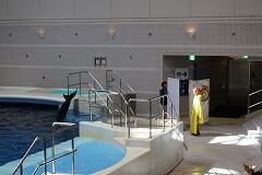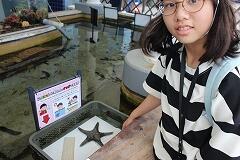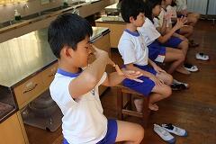 【イルカのひみつに迫る!鹿児島水族館での驚き体験】 鹿児島水族館に到着後、早速イルカのショーを見学しました。高くジャンプするイルカたちの姿に、会場は大盛り上がり。特に盛り上がったのは、イルカの「目」に関する実験コーナーです。イルカが目で対象物を確認できるかを調べるために、黄色いポンチョを着た本校の児童が実験に選ばれました。トレーナーさんが目隠しをずらしポンチョ姿の児童を見せると、学習した通りイルカが見事に尾びれを水面に打ち付けてサインを送ってくれました。実験成功の瞬間に、会場からは大きな拍手と歓声が。「うわー、やった。イルカって本当にポンチョの色が分かってるんだ!」 「すごい!これでイルカはちゃんと目で見てるって証明されたんだね。」 「選ばれた友だちは、緊張しただろうけど大成功だね。」 子どもたちは、科学的な発見の瞬間に立ち会い、驚きと感動を分かち合っていました。