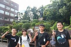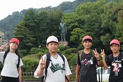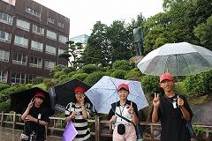 【雨中の自主研修も、絆を深めて】 午後は照国神社付近での班別自主研修です。あいにく雨が降ってしまいましたが、班の友達同士で傘をさし、互いの歩みを気遣いながらの活動となりました。県立博物館、黎明館、メルヘン館、美術館など、事前に立てた計画に基づき、各班で協力して見学を行いました。雨の中でしたが、班行動を通じて友達との絆がより深まったようです。