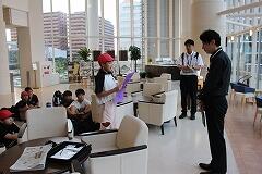 【偉人に学ぶ!維新ふるさと館で歴史を体感】 自主研修の後は、集合場所の維新ふるさと館へ。地図や案内の看板を見ながら、道をたずねるなどして、みんな無事に徒歩で到着しました。館内では、明治維新の時代に活躍した薩摩の偉人たちについて、映像や展示を通じてたっぷりと学ぶことができました。等身大の偉人西郷隆盛像、その上着も着用するなど、まるでタイムスリップしたような臨場感で、歴史を肌で感じることができました。