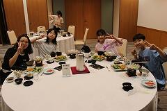 【楽しい1日を締めくくる夕食】 ホテルに戻り、皆で囲む夕食は格別です。1日の思い出を語り合いながら、美味しい食事に笑顔がこぼれます。盛りだくさんだった修学旅行1日目。学びあり、感動あり、そして友達との協力ありの充実した1日となりました。明日の活動も楽しみです。