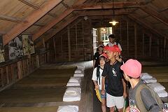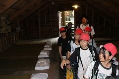 【語り部さんの講話と展示資料の見学】 いよいよ会館の中へ。語り部の方から、特攻隊員たちが本当に片道だけの燃料を積んで飛び立ったという事実や、残された家族への手紙について、丁寧に説明を受けました。特に家族の無事を願いながら、書き残した若い兵士たちの手紙が紹介されると、子どもたちは涙をこらえ、その過酷な運命に強い衝撃を受けていたようです。「もし自分だったら…」「お母さんはどんな気持ちだっただろう」と、様々な思いが去来したことでしょう。