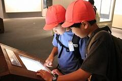 説明を受けた後、子どもたちは展示資料の見学に移りました。館内に設置された端末を使って、説明中に触れられた兵士の情報を熱心に調べ、展示スペースへ。遺書や写真、遺品などの展示ケースの前では、隊員たちの生きた証を一つ一つ真剣な眼差しで見つめ、当時の状況を深く理解しようと努めていました。この知覧での学びは、ただの歴史学習ではなく、戦争の悲惨さと、平和の尊さを肌で感じる、子どもたちにとってかけがえのない時間となりました。「戦争を二度と繰り返してはいけない」という平和への強い思いを胸に刻んだ一日となったことでしょう。