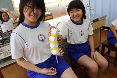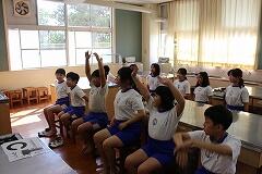 「立腰(りつよう)」(腰を立てる正しい姿勢)をした場合、背骨はゆるやかなS字カーブを描いて安定していること。猫背を続けた場合、背骨が強く曲がり、体に負担がかかってしまうこと。このモデルのおかげで、子どもたちは「良い姿勢=立腰」が、いかに体に負担をかけない大切なことかを理解できました。実際に、座りながら自分で腰を立てる練習をしたり、「背筋がピンと伸びた感じがする!」と、体の変化を口々に伝える様子が見られました。
