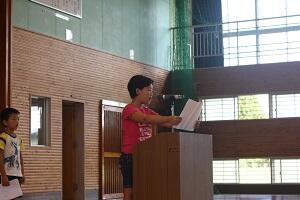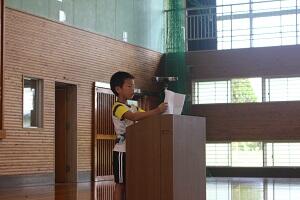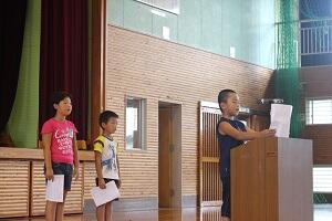 7月22日(水)に1学期の終業式がありました。式では、まず4年の代表児童が「1学期できるようになったこと」と題して堂々と作文発表を行いました。次に、校長先生から1学期のまとめのお話がありました。また、夏休みに入るので、係の先生から安全についての話もありました。34日の夏休みを有意義に過ごして欲しいです。