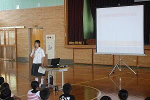 8月5日(水)は、登校日でした。全校朝会では、校長先生から話があった後、五ヶ瀬中等学校に通学する卒業生が話をしてくれました。また、係の先生から安全に関する話がありました。さらに、6年生の学級では、庄内中学校に通学する2名の卒業生が中学校生活に関する話をしてくれました。今回の登校日は、子どもたちにとってキャリア教育について考えるいい機会になりました。