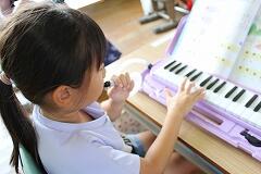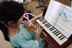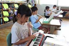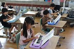 今日の音楽の授業では、1年生が元気いっぱいの歌声を響かせていました。まずは、鍵盤ハーモニカを使って「ひのまる」の演奏です。「ドドソソララソ〜」と、軽快なメロディを弾き進めていく子どもたち。「先生、ラの指ってどうやるの?」と質問しながら、指使いを工夫する姿も見られました。鍵盤ハーモニカから流れる音に合わせて、みんなの歌声も自然と大きくなっていきます。