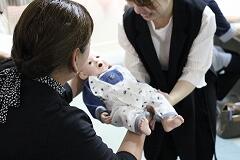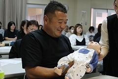 講話の途中には、別の助産師さんが赤ちゃんの人形を持って、参加者の保護者の方々の席を回ってくださいました。まるで本物の赤ちゃんを抱いているかのように、優しい眼差しで微笑んだり、驚きの表情を見せたりと、生き生きとした保護者の方々の表情がとても印象的でした。