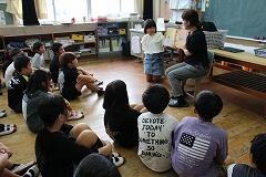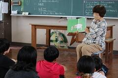【笑顔あふれる物語の空間】 慣れ親しんだお母さんの声と、娘さんの協力のもとで聞く物語は、いつも以上に子どもたちの心に響いたようです。ユーモラスな物語に、教室からは笑い声が上がり、皆、身を乗り出して絵本の世界に集中していました。まるで絵本の中からたこさぶろうが飛び出してくるかのような、温かい空気に包まれた時間となりました。