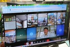 10月の全校朝会は、Google Meetを使ったオンライン形式で行われました。教室と校長室を繋ぎ、全校児童が画面越しに顔を合わせました。