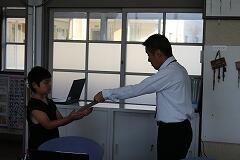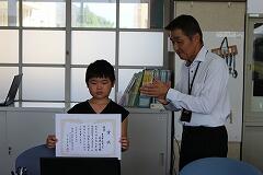 【サイエンスコンクール表彰】 朝会の最後には、サイエンスコンクールに出品し、優秀な成績を収めた児童の表彰が行われました。校長先生から直接、賞状が手渡され、全校児童の拍手で努力が称えられました。日頃の探求の成果が実を結び、大きな喜びとなりました。