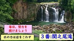 3番:関之尾滝(せきのおのたき)を主題に関之尾滝が硬い岩を壊すように、「毎日努力を続けるたくましい子」に育ってほしい。校長先生は「校歌には、卒業生みんなの『学校を愛する思い』も込められています。この校歌をいつまでも大切に、心を込めて歌っていきましょう」と締めくくりました。