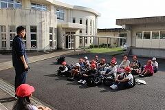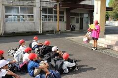 【菓子野小学校の歴史をたどって】 菓子野小学校は、明治11年(1878年)に三原叢吾先生が創設されました。三原先生の墓地は、校区内にあります。毎年4年生が庄内地区まちづくり協議会の方々の協力のもと、お墓参りをしています。かつて庄内小学校の分校となった時期もありましたが、昭和26年に庄内町立として、昭和40年に都城市立として再び歩みを進めてきました。校長先生は、当時の空撮写真などを見せながら、長い歴史を重ねてきた学校への愛情を伝えました。