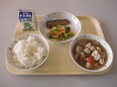今日のメニューは、鮭フライ、きんぴらごぼう、里芋のみそ汁、白ご飯、牛乳です。来週は地産地消週間で、19日にはふるさと給食も予定されていますが、今日のメニューも里芋がごろり、きんぴらごぼうもどっさりおいしい故郷の食材が使われています。鮭は残念ながら地元で捕れないないようです。