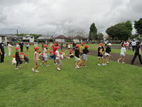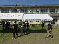 朝、学校に着くと先生方が50m走のラインを引いていました。本年度の菓子野小学校は、プール改修工事のため5月28日(日)が運動会です。そのための準備が始まりました。ありがとうございます。