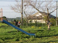 そんな中、懐かしい遊具で遊んでいる子ども達がいました。竹馬です。乗るのが難しそうでした。しかし、お互いに支えあったり教えあったりして、仲よく遊ぶ様子が微笑ましかったです。
