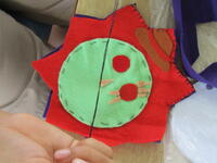 よく見ると、犬や猫、ネズミのお面などがありました。みんな集まって、一体何をしているのでしょう。答えは、今週日曜日の参観日で分かります。ぜひ、1年生のがんばりを見てあげてください。