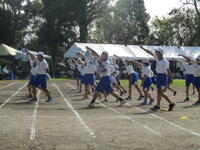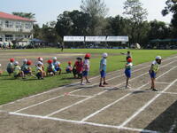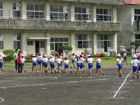 1年生が入学して2週目です。今日も教室から元気な声が聞こえてきました。教室に行ってみると、国語の「うたにあわせてあいうえお」という学習で、先生と教科書の音読をしていました。先生の読みに続いて読んだり、先生と掛け合いをしながら読んだり、楽しそうに学習していました。2校時の体育は、2年生と合同で運動会に向けての学習が始まりました。今週もよいスタートができました。
