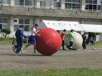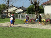 1年生が何かを引っ張っています。力の入ったかけ声も聞こえてきます。はっきりとは分かりませんが、大きなものを引っ張っている様子です。