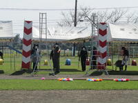 実際にやってみると、これがなかなか難しい。「上」と言って、あまりのたかさに愕然としたり、「下」と言って下のスペースがほとんどなかったりなどします。子ども達は、上手に縄の上を跳んだり、縄と縄の間を潜り抜けたりしていました。