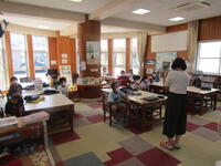 11日に入学した1年生も担任の先生の話をよく聞いて、好きなものなどの発表をしました。そのあとの「だれでしょう?」クイズは大盛り上がりでした。1年生だけでなく他の学年もいろいろな工夫のある授業を楽しんでいました。