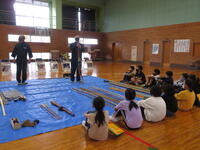 5時間目に、不審者対応の避難訓練を実施しました。都城警察署の方々に来ていただき、不審者対応について教えていただきました。