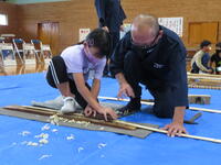 遊びの中で、気になる遊びがありました。それは、「いろはにほへと」という遊びです。2人が2本の縄を使い、縄の高さを決めます。その間他の人は、後ろを向いて見ないようにして、縄の上か下か真ん中を言います。そして、前を見て、自分の言ったところを通ります。この遊びの楽しくも難しいところは、言った所を必ず跳ぶか、くぐらなければなりません。