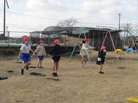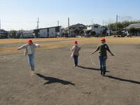 来週から学校でなわとび練習が始まるからでしょうか。前とびや交差とびの練習をしていました。サッカーをやっている子ども達は、一つのボールに全員が向かっていき、楽しそうでした、おにごっこをしている子ども達は、冷たい風にも負けずに走っていました。