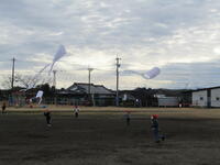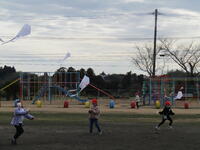1年生生活科「冬を楽しもう」の学習で、1年生が凧あげをしていたのです。広い空いっぱいに、凧が気持よさそうに飛んでいました。1年生、凧あげの仕方がとても上手でしたよ。