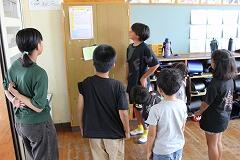 子どもたちは夏休み中の登校日に元気に登校しました。今回の登校日では、オンラインでの全校集会が行われ、校長先生のお話に真剣に耳を傾けました。また、集会後には戦争に関する貴重な資料の見学も行われ、平和について考える貴重な一日となりました。