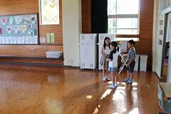 今朝は、朝の活動の時間を利用して、全校児童が参加する清掃班会が開かれました。本校の清掃活動は、全学年の児童が協力して行う縦割り班が特徴です。上級生が下級生に掃除の仕方を教える中で、責任感とリーダーシップが、下級生は上級生の姿から協調性や規律を学び、自然と思いやりの心が育まれます。つまり、上級生が手本となり、下級生に優しく寄り添うことで、信頼関係が築かれます。ともに汗を流し、協力することで、清掃の技術だけでなく、相手を思いやる温かい心が育まれています。