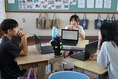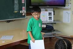 6年生の教室からは楽しそうな声が聞こえてきました。3人グループで「NGワードゲーム」に挑戦していました。一人が自分の前に置かれたタブレットに表示されたNGワードを会話の中で言ってはいけないゲームです。他の二人から指示を受け、その言葉を出さないように考えながらスピーチする姿は、静かな教室で頭の中がフル回転している心理ゲームでもあります。NGワードには、例えば「まじ?」「うそ!」「へぇー」といった、思わず会話で使ってしまうような言葉が設定されているところもありました。会話力や注意力、そして相手の言葉を予測する力が試されるため、コミュニケーションを活性化させるレクリエーションとして友達と協力しながら楽しそうに取り組む姿から、最高学年らしい活発な雰囲気が伝わってきました。 どの学年も、2学期に向けて新たな気持ちでスタートを切ったようです。目標に向かって頑張る子どもたちを、これからも応援していきます。