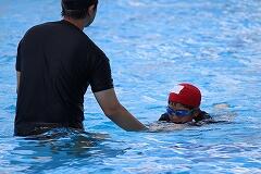 ビート板を使って平泳ぎの足の動かし方を一つひとつ確認したり、クロールの手のかき方や足のバタ足、そして息継ぎのタイミングなどを練習したりと、様々な泳法に挑戦していました。友だちと教え合ったり、先生のアドバイスに真剣に耳を傾けたりする姿も見られました。最初は少し緊張した面持ちだった子どもたちも、すぐに水に慣れ、いきいきとした表情で泳いでいました。