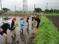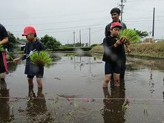 ご覧のように、子どもたちは30分ほどで水田の約5分の2を植えることができました。時間と天気の関係で残りは機械での田植えとなりましたが、先週からの泥んこ遊びも含め、本当に素晴らしい自然体験をさせていただきました。この貴重な体験を支えてくださったJA青年部の皆様、そよ風グループの皆様、そして温かいご指導をいただいた保護者の皆様に心より感謝申し上げます。