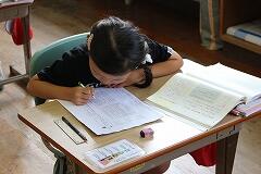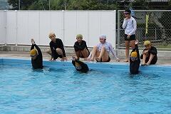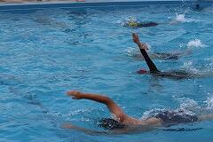 夏の太陽が降り注ぐ中、5・6年生の水泳学習がスタートしました。先週の新燃岳の噴火により、少し火山灰の影響がありますが、ゴーグルをしっかりとつけて学習を行っています。子どもたちは4年生までに、息継ぎをしながらのバタ足泳ぎや平泳ぎの基礎をしっかりと学んでいます。高学年の2年間では、いよいよクロールや平泳ぎといった本格的な泳法を習得し、さらに長く、力強く泳ぎ続けることを目指します。