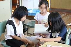 まず、子どもたちは、自分が伝えたいことを整理するために「構成メモ」を作成しました。何について書くのか、どこが「いいな」「すてきだな」と感じたのか、どんな気持ちを伝えたいのか、熱心に鉛筆を走らせていました。そして、この日の学習のハイライトは、子どもたちがお互いの構成メモを読み合い、感想やアドバイスを伝え合う「交流の時間」でした。写真のように、グループで向き合い、友達のメモに真剣に耳を傾けたり、「ここはもっとこうしたら伝わりやすいよ」「私もそう思った!」と活発に意見を交換したりする姿が見られました。