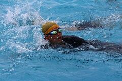 今日の学習は、水と一体になる感覚を養うウォーミングアップから始まりました。水に潜ったり、ふわっと浮いてみたり、け伸びやばた足でスイスイ進んだり。子どもたちは「楽しい!」「できる!」という喜びを全身で感じながら、水の中で体を動かす感覚を掴んでいきました。特に力を入れたのは、クロールで誰もがつまずきやすい「呼吸動作」です。どうすればスムーズに息継ぎができるのか、子どもたちは真剣な眼差しで取り組みました。