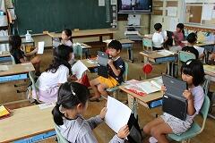7月14日、5年生の社会科では「稲作の盛んな地域」をテーマに、庄内平野のお米作りについて深く掘り下げました。今回の学習課題は、「庄内平野で米づくりをしている人たちは、おいしい米をどのように生産し、消費者に届けているのだろう?」