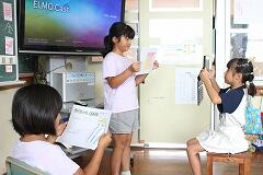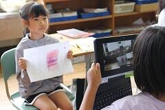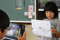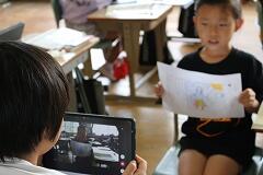 【一人一台端末で、発表力もぐんぐんUP!】 今回の学習では、発表に向けて話す姿を一人一台端末で録画し、見返すという活動も取り入れました。自分の発表している姿を客観的に見ることで、「もっとゆっくり話そう」「丁寧な言葉遣いができたかな?」と、自分自身で改善点を見つけていきます。友達からの温かいフィードバックに加え、自分の姿を確認できることで、子どもたちは発表への自信をさらに深めていました。