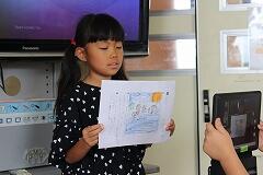 【堂々とした発表で、伝える力が開花】 写真のように、子どもたちは皆の前に堂々と立ち、それぞれの個性あふれるオリジナル道具を生き生きと紹介しました。質問する人、そしてタブレットでその様子を撮影する人、それぞれが役割をしっかりと果たし、協力しながら発表会を進行。前回よりも声は一段と大きくなり、道具を紹介する説明もぐっと詳しくなっていました。
