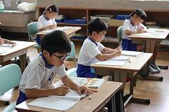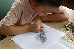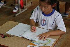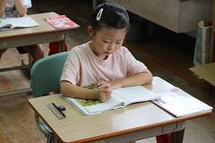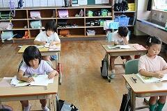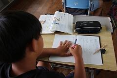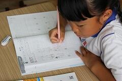 その後は、学んだばかりの筆算のやり方を実践する時間です。写真にあるように、練習問題に取り組み始めると、教室は一転して集中モードに。ある子は、鉛筆を走らせる音だけが響く中、問題と向き合い、黙々と計算を進めていました。また別の子は、計算の途中で少し考えているようでしたが、すぐに「できた!」と小さな声でつぶやき、次の問題へ。中には、ノートいっぱいに丁寧に数字を書き込み、一つ一つの位を意識しながら筆算を進める姿も見られました。