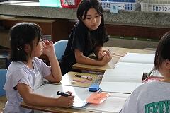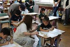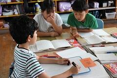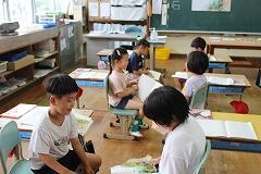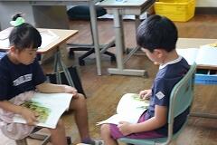 スイミーが大きな魚から逃げて、一人ぼっちで寂しい気持ちになりながらも、新しい出会いを通して少しずつ元気を取り戻していく様子を自分の言葉で表現しました。表現したことをペアで紹介して考えの交流をします。友達の考えを聞くことで物語の世界が、子どもたちの中でぐっと広がり、まるで自分もその場にいるかのように感じています。