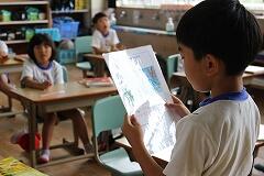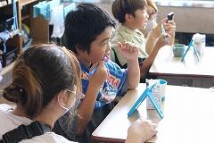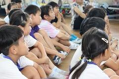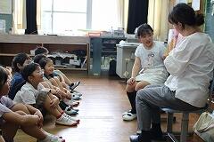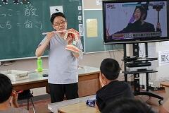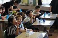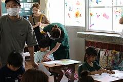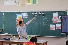 動画のおさらいも兼ねて、先生から「1グラムの歯垢(プラーク)にどれくらいのばい菌がいるでしょう?」というクイズが出されました。答えはなんと1000億以上! その多さに子どもたちは改めてびっくりしていました。先生のお話に夢中になった子どもたちは、早く歯みがきをしたくてたまらない様子で、真剣に話を聞いていました。