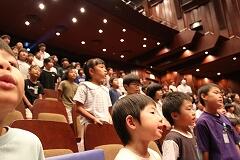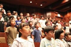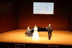 MJホールの舞台に響き渡るソプラノ歌手とバリトン歌手の声量は、始まると同時に会場がシーンと静まりかえり、子どもたちはその歌声に引き込まれていきました。「声は楽器の一つ」という説明のとおりで、プロの芸術に触れることで、子どもたちの豊かな情操が養われました。