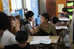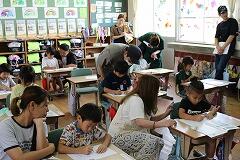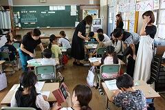 また、中学年の教室では、いつもとは一味違った特別な読み聞かせがありました。なんと、子どもたちのお母さんがボランティアとして参加してくださり、親子での読み聞かせが実現したのです! お母さんの優しい声と、時にユーモラスな声色に、子どもたちは興味津々。慣れ親しんだお母さんの声で聞く物語は、いつも以上に子どもたちの心に響いたことでしょう。身を乗り出して聞き入ったり、時折笑い声が上がったりと、温かい空気に包まれた時間となりました。