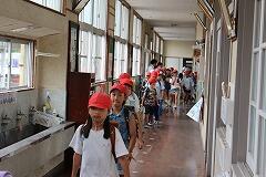 これから梅雨時期に入り、急に天候が悪くなり大雨が想定されることもあります。そこで、今日は大雨の予報が出て、子どもたちを安全に下校させるための訓練を行いました。まず、先生方で集団下校になった経緯とこれから安全に下校させるための確認を行い、学級で児童に説明を行いました。学級では、「川や用水路に近づかない。」「前が見えるように傘をさす。」など指導を行いました。登校班長は1年生を迎えに行き、1列で静かに移動しながら、地区別に体育館に集合しました。その後、人数確認や集団下校における全体指導をしました。地区の担当教師と地区にある危険箇所の確認も行いました。最後に、集団下校の引率をしながら、水がたくさん出る場所を確認することができました。来年度は、自分たちでは帰ることができない場合に保護者への引き渡し訓練を行う予定です。