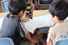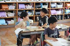10月10日(木)に本校では、国語科における『子どもたちが主役の授業』を全職員で研究していることをお知らせしました。今日は、4年生『ごんぎつね』の学習、ごんがつぐないとして栗を持ってきたところ、兵十に見つかり火縄銃で撃たれてしまう場面において「兵十」の気持ちを考える活動の続きを紹介します。「兵十」は、「ごん」がまたいたずらをしにきたと思っていましたが、実はつぐないをしに来ていることに気付いた「兵十」の気持ちをじっくり一人で考え、その後ペアやグループで意見交流を行いました。画像にもありますように、活発に子どもたちは意見交換をしていました。最後に、兵十の心の距離を表現する『心メーター』に、交流した意見をもとにしながら記入して学習を振り返りました。