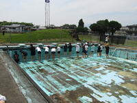 5・6校時、3~6年生の約60名でプール清掃をしました。大プールや小プールの他、足洗い場、更衣室、トイレなどをきれいにしました。プールには1年分のよごれがたまっていて、落ち葉やプール底のぬめりを取るのが大変でした。掃除が終わった後は、プール全体がきらきら光って見えました。みんなのがんばりのおかげです。